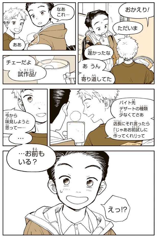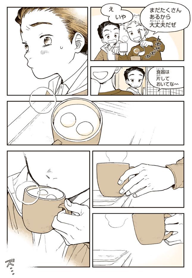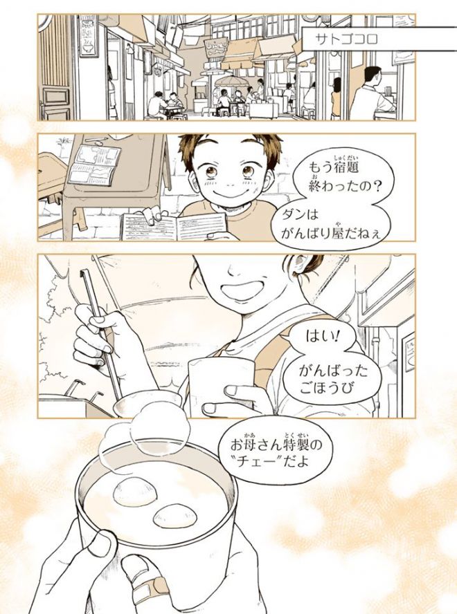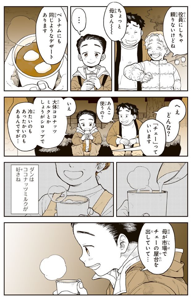 家に帰ると、ベトナム人のルームメイトが「チェー」を作っていました。一口すすったダンくんの脳裏には、「がんばっててえらい!」という母の声がよみがえります。「だから欲しくなかったんだよ。サトゴコロつくってわかってたからさあ」と目に涙をためるのでした。