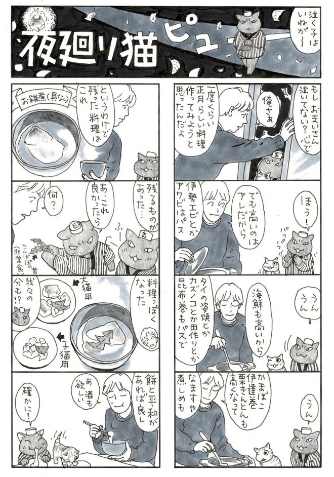 初めて「お正月らしい料理をつくろう」と思い立った男性ですが、海鮮系は高いし、お節の具材も値上がりしているし……。「ハガネの女」「カンナさーん!」などで知られる漫画家の深谷かほるさんが、SNSで発表してきた「夜廻り猫」。今回は、自宅で年末年始を過ごす男性のエピソードです。