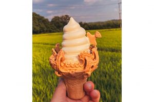 火焔土器型ソフトクリーム容器 縄文仕込みの「映え」見せつける