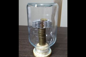えっ!超能力? 逆さの瓶の中に積まれたコイン、驚きの制作過程