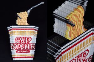 綿棒3600本でカップヌードルを再現! 「麺」と「綿」のダジャレです