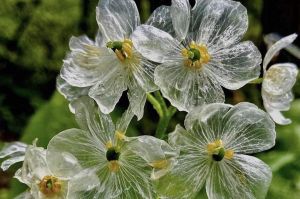 まるでガラス細工…雨に濡れると透き通るお花 どうやって撮った?