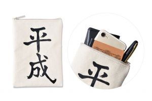 ファイルにポーチ、みんな「平成」柄! 掲げればあなたも官房長官?