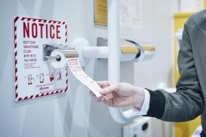 なぜドコモが? 成田空港に『スマホ用トイレットペーパー』設置