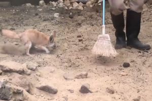 お掃除フェネック、飼育員さんについて回る動画「うおおお!」な勢い
