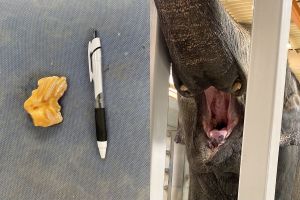 抜けた歯を「はい、どうぞ」 ゾウから飼育員へ、こんなに大きいんだ