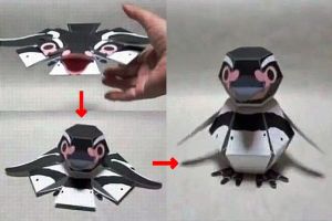 着地した瞬間ペンギンに変身 動いて変身するペーパークラフトが話題
