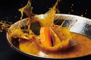 スープカレー、なぜ汁が跳ねた写真に? 話題の垂れ幕、躍動感の狙い