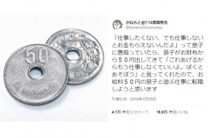息子から差し出された50円 「これあげる。もう仕事しなくていいよ」