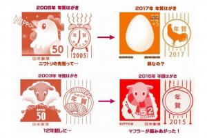 今回は逆戻り? 年賀ハガキの鶏がタマゴに 影にこっそり仕込み文字