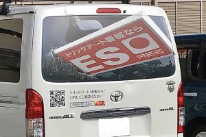 リアガラスに看板が刺さってる!?トリックアート宣伝車に称賛の嵐