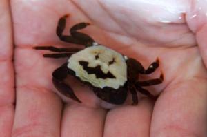 なんたる偶然! ハロウィーン仕様のカニ 水族館が近くの海岸で採取