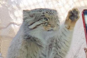 超高速!招きマヌルネコ ガラスに向かって前脚カキカキ…顔が真剣だ
