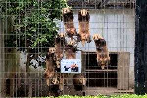 木登り苦手なはずが… アナグマ9頭の「ごはんちょうだい」が可愛い