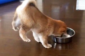 食事中に逆立ちしちゃう柴犬! 生後2カ月りんご郎、飼い主に聞いた
