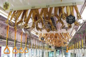 天井から千手観音の手が! 「観音電車」の中吊り、京福電鉄に聞いた