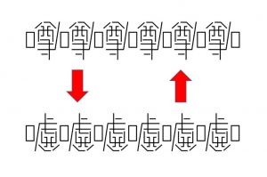 「噂」をひっくり返すと「嘘」に! 皮肉込めたアンビグラムが話題に