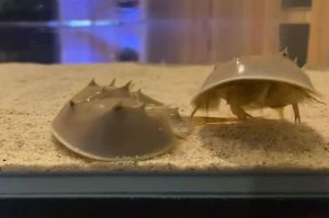 カブトガニが通りま~す 甲羅に乗ったり、追いかけたり…意外と活発