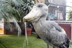 豪快に飲んで、盛大にこぼしすぎ… 水を飲むハシビロコウにビックリ
