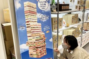 高さ1m「あべのハルカスサンド」 食品サンプルの技術を結集し制作