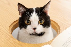 猫が顔出せるテーブル 中央の穴からひょっこり、発売直後から話題に