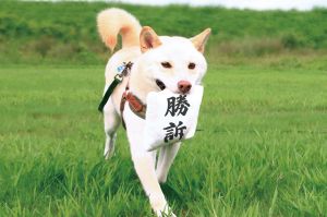 犬がくわえてきたのは「勝訴」でした 裁判風アイデアおもちゃが話題