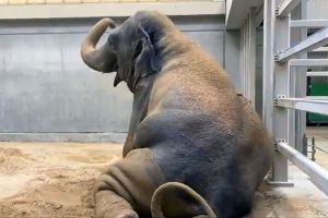 通称「ゾウのきなこもち」! 砂浴び時の飼育員用語がピッタリすぎる