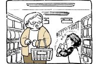 店先で盛り上がる小学生、じっと見てくるおじいさんの視線…次の瞬間