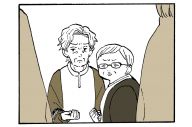 メイドさんをじっと見つめるおばあさん すごい形相、でも後日孫には
