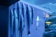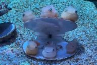 コバンザメの集団が、きれいに整列!?閉館間近の姿がまるで「干物」