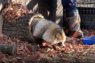 寝起きタヌキ、飼育員に気づいてビクッ! なんでここに?動画が話題
