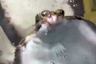カレイなる立ち泳ぎ! エサくれアピール&正面から見た顔がカワイイ
