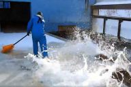 「水族館式の雪かき」が壮観! セイウチが手伝って飼育員びしょ濡れ