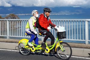 全盲の男性、タンデム自転車で琵琶湖一周 2日間で150キロ走った理由