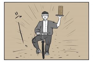 「おまたせしやしたぁ!」出前持ちが持ってきたものは…4コマ漫画
