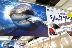 サメが食いちぎった? 海遊館の破れた中刷り広告、秀逸すぎる!