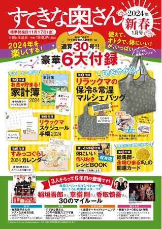 年末年始、書店の女性誌コーナーでひときわ目を引く豪華付録付きの本『すてきな奥さん2024年新春1月号』は、2023年11月17日(金)発売予定です。主婦と生活社より刊行。