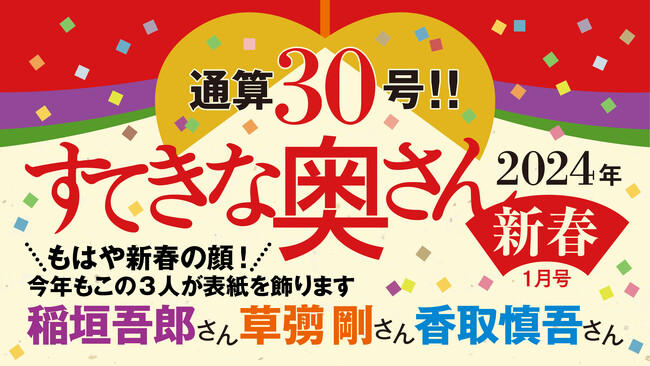 〈もはや年末の風物詩!? 今年もこの3人が表紙を飾ります〉稲垣吾郎さん、草彅 剛さん、香取慎吾さん『すてきな奥さん2024年新春1月号』は、おかげさまで通巻30号!