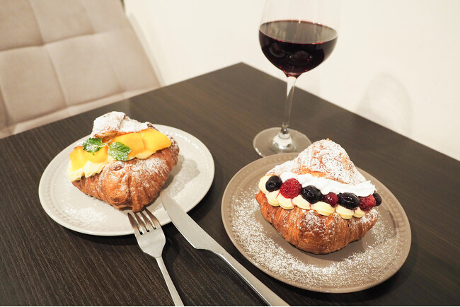 塩味を効かせたクロワッサンに、フルーツとクリームの甘さがマッチ。ワインのお供にもどうぞ。