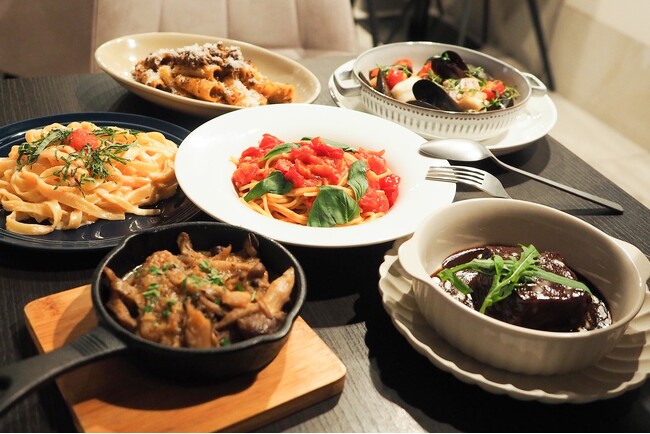 特製パスタ×煮込み料理で、本格イタリアンをカジュアルに楽しむリニューアル後のディナーメニューでは、シェフ自慢のパスタや煮込み料理が充実しています。