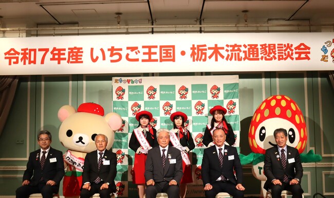 令和7年産 いちご王国・栃木 流通懇談会にてコリラックマが登場しました!11月26日(火)、ヒルトン東京お台場にて令和7年産 いちご王国・栃木 流通懇談会が行われ、いちご大使任命式にコリラックマが登場しました。