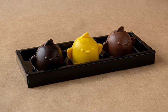 ぴよりん Bonbon de chocolat(3個入)2,000円ぴよりん Bonbon de chocolatぴよりん型のチョコレートに、キャラメル、プラリネガナッシュ、しっとりフィナンシェ をとじ込めました。それぞれのチョコレートにあわせた3種類の味をお楽しみください。