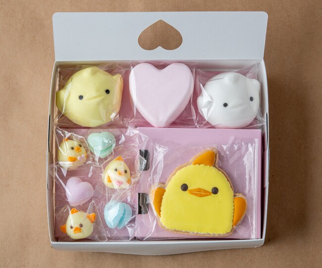 ◆人気商品の詰め合わせ、ぴよりんグッズなども販売人気の「ぴよりんシュガー」「ぴよりんマシュマロ」「ぴよりんアイシングクッキー」を詰め合わせたアムール限定の「ぴよりんハートBOX」や、ぬいぐるみなど、ぴよりんグッズも販売します。