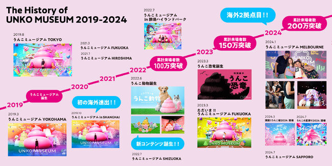 うんこというテーマを通じて、お客様の固定観念を覆す今までにはない体験を提供しているウンターテインメント施設です。2019年にかつてないエンタメとして生まれ、大きな話題を呼んだ「うんこミュージアム」は、常設旗艦店である東京の「うんこミュージアム TOKYO」をはじめ、横浜、上海、広島、静岡、那須など全国各地で開催。現在までに、累計200万人以上の世界各国のウンカーの皆様にお楽しみいただいています。