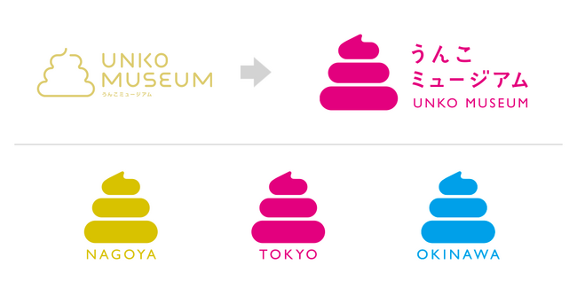 「うんこミュージアム」がこの世に生まれて約6年が過ぎ、今や多くの皆様に知られる存在となりました。それに伴って人類の「うんこレベル」も大きく向上したと思われます。このタイミングでロゴを大きく刷新することにいたしました。新しいロゴは以前からの「かわいさ」は保ちつつ、うんこのモチーフをさらに強く打ち出したボールドなデザインを採用。タイトルロゴもアルファベットからひらがなへと変更して可読性を高めると共に、堂々とうんこの存在を知らしめるものとなっています。また、会場ごとにロゴのテーマカラーを変えて個性を持たせ、総体としてカラフルな「うんこミュージアム」の世界を表現しました。