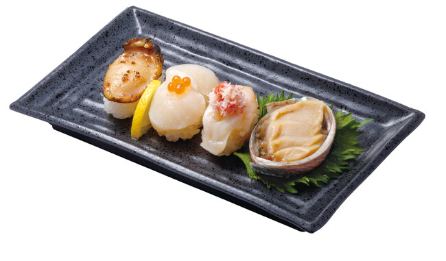 また、コリコリとした食感がクセになる「あわび」、トラフグの皮のコリコリとした食感とあんきもの濃厚な味わいが楽しめる「とらふぐ皮のあんきも和え軍艦」、噛むほどに旨みを感じられる「赤貝ひも軍艦」も登場。はま寿司の特選ねたを、どうぞお見逃しなく!