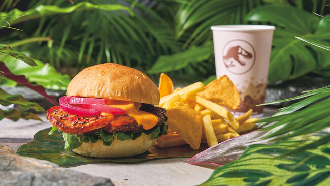 ◆『ディスカバリー・レストラン』のメニューも一新!恐竜をイメージしたワイルドな新メニューが勢ぞろい! 映画『ジュラシック・パーク』に登場するビジターセンターを再現した人気レストラン『ディスカバリー・レストラン』は、この春、子どもから大人まで誰もが大好きなハンバーガーレストランにリニューアルします。T-REXの迫力をビーフや黒いバンズで豪快に表現した「T-REX・バーガーセット」や、トリケラトプスの背中にキッズの好きなハンバーガーやポテトがつまった「トリケラトプス・キッズバーガーセット」など、恐竜をイメージしたダイナミックでボリューム満点のメニューが多数登場します(2025年3月8日(土)から販売開始予定)。また、ジャイロスフィアと戯れるベイビーラプトルがかわいい「ラプトル&ジャイロスフィア・ポップコーンバケツ」、亜熱帯のジャングルを迷彩柄のデコレーションで表現した「ジュラシック・パーク・チョコレートチュリトス ~レモン~」も発売、質感やデザインなど細部にこだわったカートフードも販売します(2025年3月3日(月)から販売開始予定)。