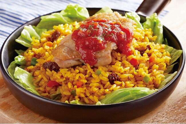 ガーリックソースのかかったチキンと一緒に食べると異国風な味わいを楽しめます。