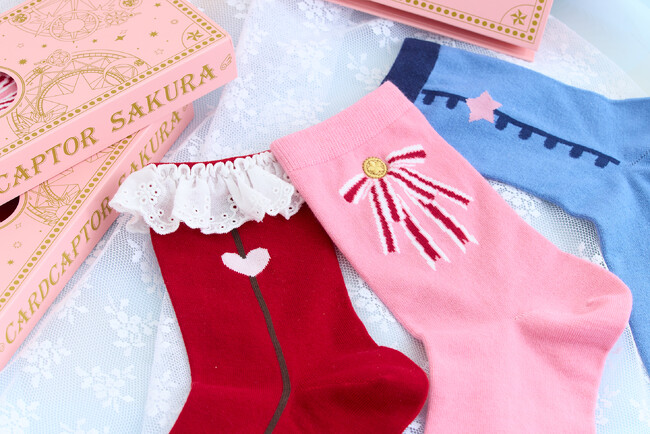 「カードキャプターさくら TaKaRaBaKo」では、「アニメ カードキャプターさくら」を観ていたあの頃のキュンとした想いにいつだって触れ合える、大人になった今でも宝箱を開く時のわくわくキラキラとしたときめく気持ちを引き出すようなオリジナル商品を展開します。キービジュアルのイラストをデザインしたフリルトートバッグやショルダーバッグ、コスチュームをモチーフにしたソックスなど、日常生活に取り込みやすいアイテムを多数ご用意いたします。