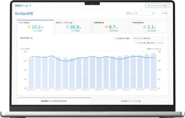 ◆経営と現場をつなぐ戦略支援SaaS「Findy Team+」とはグローバル市場でも展開を進めている「Findy Team+」は、開発データを意思決定に活かす、経営と現場をつなぐ戦略支援SaaSです。特許取得の独自技術を用いて、GitHub、GitLab、Jiraなどの開発データを解析。開発組織のパフォーマンスを測る国際的な指標やフレームワークに基づき、チーム・個人の両面から開発生産性・開発者体験の可視化・向上を支援します。